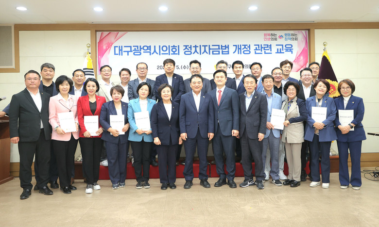 [대구 세계타임즈=한윤석 기자] 대구시의회(의장 이만규)는 6월 5일(수) 16:00 시의회 3층 회의실에서 대구시의원 전원을 대상으로 7월 1일부터 시행되는 지방의회의원 후원회 도입 관련 ‘정치자금법 개정 관련 교육’을 실시했다.