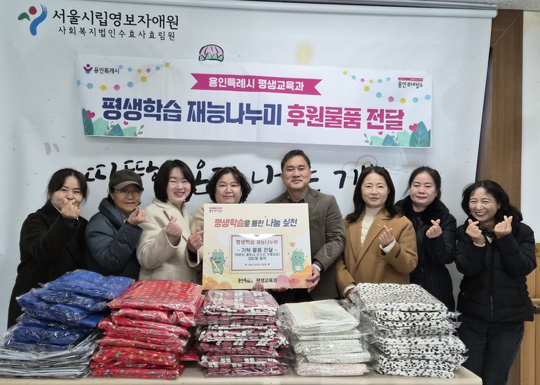 [용인시 세계타임즈=송민수 기자] 용인특례시(시장 이상일)는 18일 평생학습관·기흥평생학습관 ‘평생학습 재능나누미’ 수강생들이 처인구 이동읍에 있는 서울시립영보자애원에 직접 만든 턱받이, 무릎담요 등을 기탁했다고 19일 밝혔다.