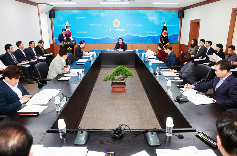 [대구 세계타임즈=한윤석 기자] 대구시의회(의장 이만규)는 11월 6일(월) 제305회 정례회 제1차 본회의 종료 직후 시의회 2층 회의실에서 의장단과 각 상임위원장이 모인 가운데 ‘확대 의장단 회의’를 열었다.