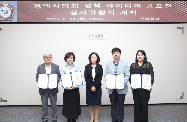 [평택시 세계타임즈=송민수 기자] 평택시의회(의장 강정구)는 23일 ‘2025년 평택시의회 정책 아이디어 공모전’ 심사위원회를 개최해 우수상 1건, 장려상 1건을 선정했다.