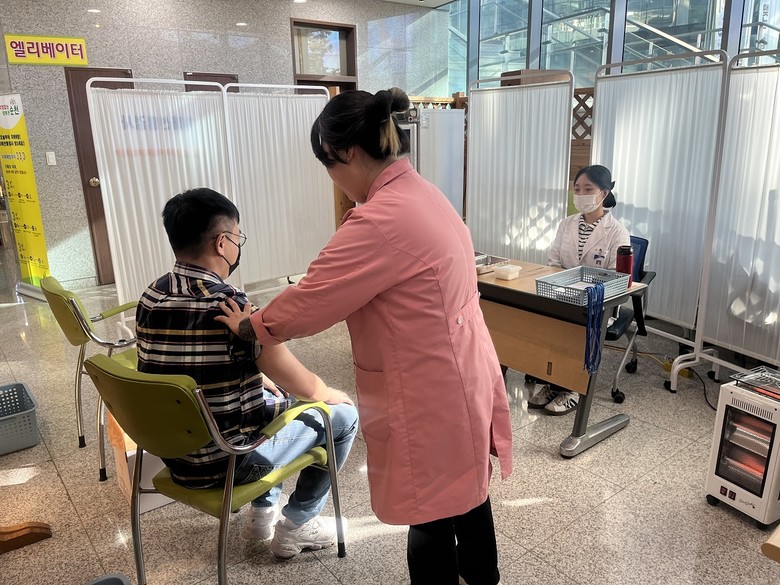 | ▲ 시민들이 순천시보건소에서 대상포진 예방접종 지원 서비스를 받고 있다 |