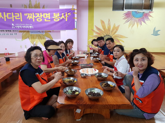 [대전=세계타임즈 이장성 기자] 폭염에도 따뜻한 이웃사랑을 꾸준히 전달하고 있는 대전시 봉사단체 사단법인 사랑의 사다리 밴드(리더 이정제)는 20일 동구 가양동에 위치한 평화의 마을(원장 신종근)에서 짜장면 봉사로 아이들과 즐거운 시간을 보냈다.