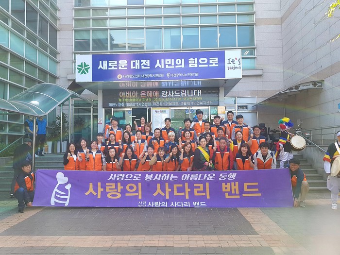 [세계타임즈 이장성 기자] 다양한 봉사를 꾸준히 실천하고 있는 SNS 대전시 봉사단체 사랑의 사다리 밴드(리더 이정제)는 8일 오전11시, 대전광역시 노인복지관(관장 김인원)에서 진행된 약 천여명이 참석한 제47회 어버이날 기념식 행사에 참가하여 사회적 효행을 실천 하였다.