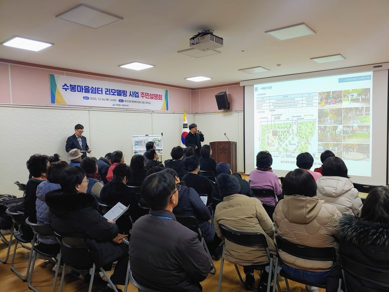 설명회에서는 노후화된 파고라 정비와 바닥재 교체 등 기본 계획안이 소개됐고, 참석자들은 쉼터 이용 활성화 방안과 시설 개선에 대한 다양한 의견을 제시했다.