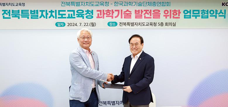 [전북특별자치도교육청=세계타임즈 이상호 기자] 전북특별자치도교육청과 한국과학기술단체총연합회가 지역 과학기술 발전을 위해 힘을 모은다.