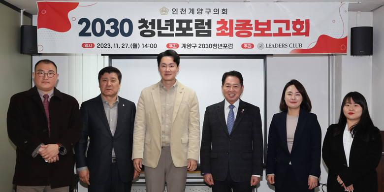 [계양구 세계타임즈=심하린 기자] 인천 계양구의회 의원연구단체인 ‘2023 청년포럼(여재만 대표의원)’은 지난 27일 계양구의회 5층 세미나실에서 연구용역 최종보고회를 개최했다.
