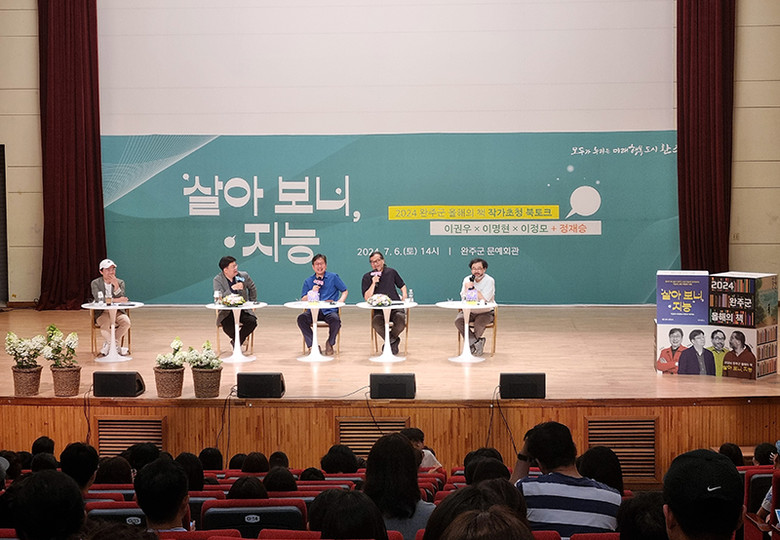 완주군에 따르면 북토크는 지난 6일 완주문화예술회관에서 ‘챗GPT와 글쓰기부터 뇌와 마음의 관계까지, 지능에 관한 특별한 대화’라는 주제로 진행됐으며, 일러스트레이터이자 작가인 완주군 명예군민 밥장(본명 장석원)의 사회로 500여 명의 주민들이 함께했다.