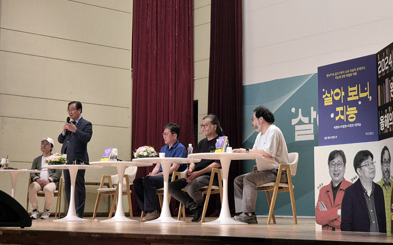 이번 북토크는 「책읽기의 달인 호모 부커스」, 「고전 한 책 깊이읽기」 등의 책을 쓰고 <출판저널> 편집장을 역임한 도서평론가 이권우와, 「이명현의 별 헤는 밤」, 「지구인의 우주공부」 등의 저자이자 과학책방 ‘갈다’ 대표인 천문학자 이명현, 「과학관으로 온 엉뚱한 질문들」, 「과학이 가르쳐준 것들」 등의 책을 쓰고 前국립과천과학관장을 역임한 이정모와 우리나라를 대표하는 뇌과학자 KAIST 정재승 교수가 함께 하며 인공지능 시대를 살아가며 독서와 글쓰기, 뇌와 마음의 관계, 노년의 뇌 등 지능을 둘러싼 다양한 이야기들을 나눴다.