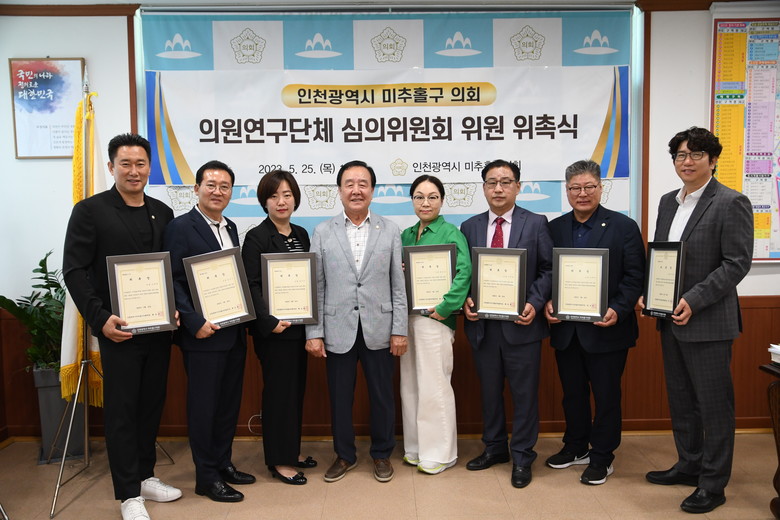 심의위원회에 앞서 개최된 위촉식에서 배상록 의장은 심의위원회 위원장인 정락재 의회운영위원회 위원장을 비롯하여 미추홀구의회 의원 4명(김진구, 김재원, 박수연 ,황숙경)과 관련분야에 전문성을 갖춘 민간위원 2명(이한형, 이선기)에게 위촉장을 전달했다.
