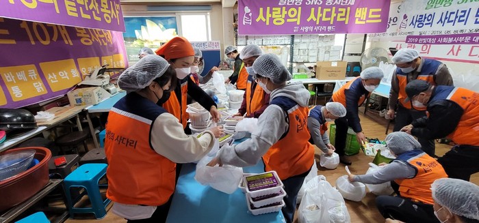 [대전=세계타임즈 이채봉 기자] 코로나19로 힘든 상황에서도 비대면 봉사로 다양한 봉사를 펼치고 있는 사단법인 사랑의 사다리 밴드(리더 이정제)는 3일 오전9시~12시, 동구/대덕구 소외계층 58가정에 밑반찬 3종류를 봉사로 우리 사회의 따뜻한 사랑을 전달 하였다.