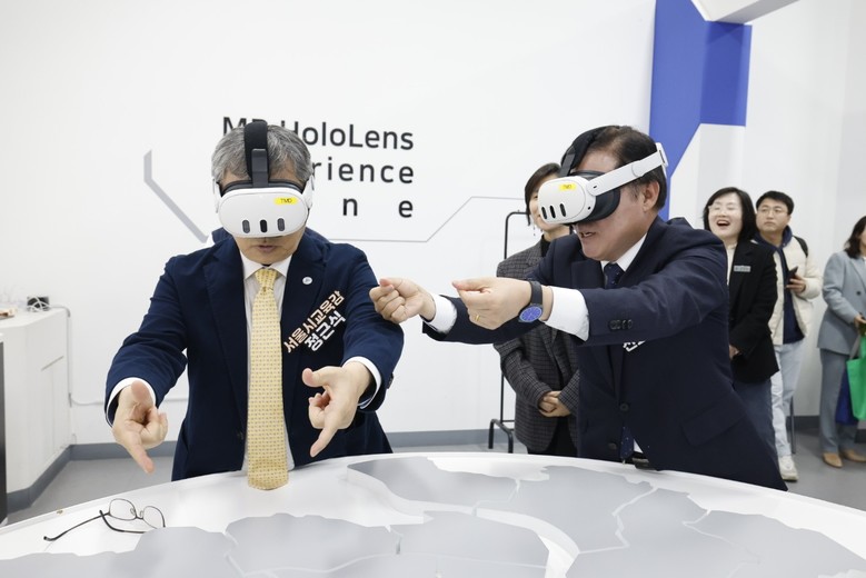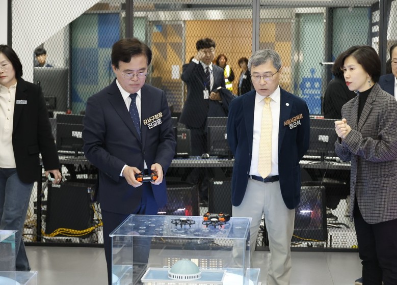진 구청장은 정근식 서울시교육감과 함께 가상 공간에서 건물과 물건을 자유자재로 배치해 보는 ‘MR(혼합현실) 홀로렌즈’, 드론비행 등을 체험했다.