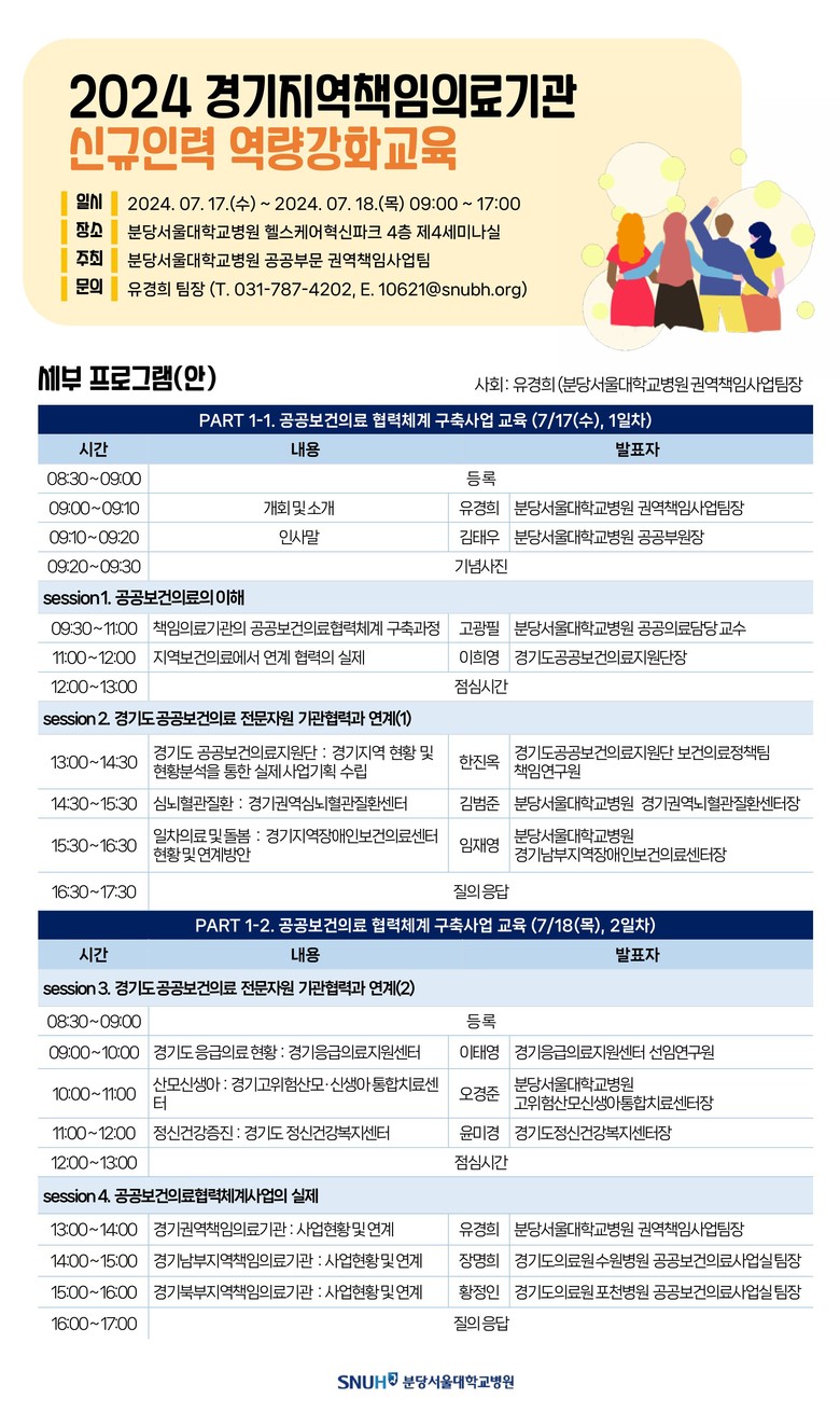 | ▲경기지역책임의료기관 신규인력 역량강화교육 포스터(사진제공=분당서울대병원) |