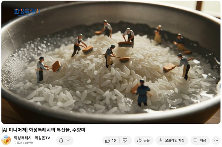 이와 함께, 시는 지난 9월, 지역의 대표 특산물을 소재로 한 AI 미니어처 영상 시리즈를 공개했다. 수향미, 바지락, 송산포도를 각각 주제로 제작한 이번 영상은 AI가 구현한 섬세하고 아기자기한 비주얼과 감각적인 연출로 짧은 시간 안에 화성의 맛과 정서를 생생하게 담아냈다.
