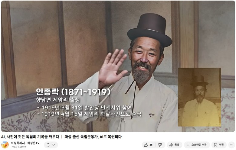 영상이 공개되자 시민들의 반응도 뜨거웠다. 동탄에 거주하는 한 시민은 “AI로 복원된 화성 독립운동가의 얼굴을 보니 마음이 뭉클했다”며, “시 유튜브에서 이렇게 감동적인 콘텐츠를 볼 줄은 몰랐다”고 덧붙였다.