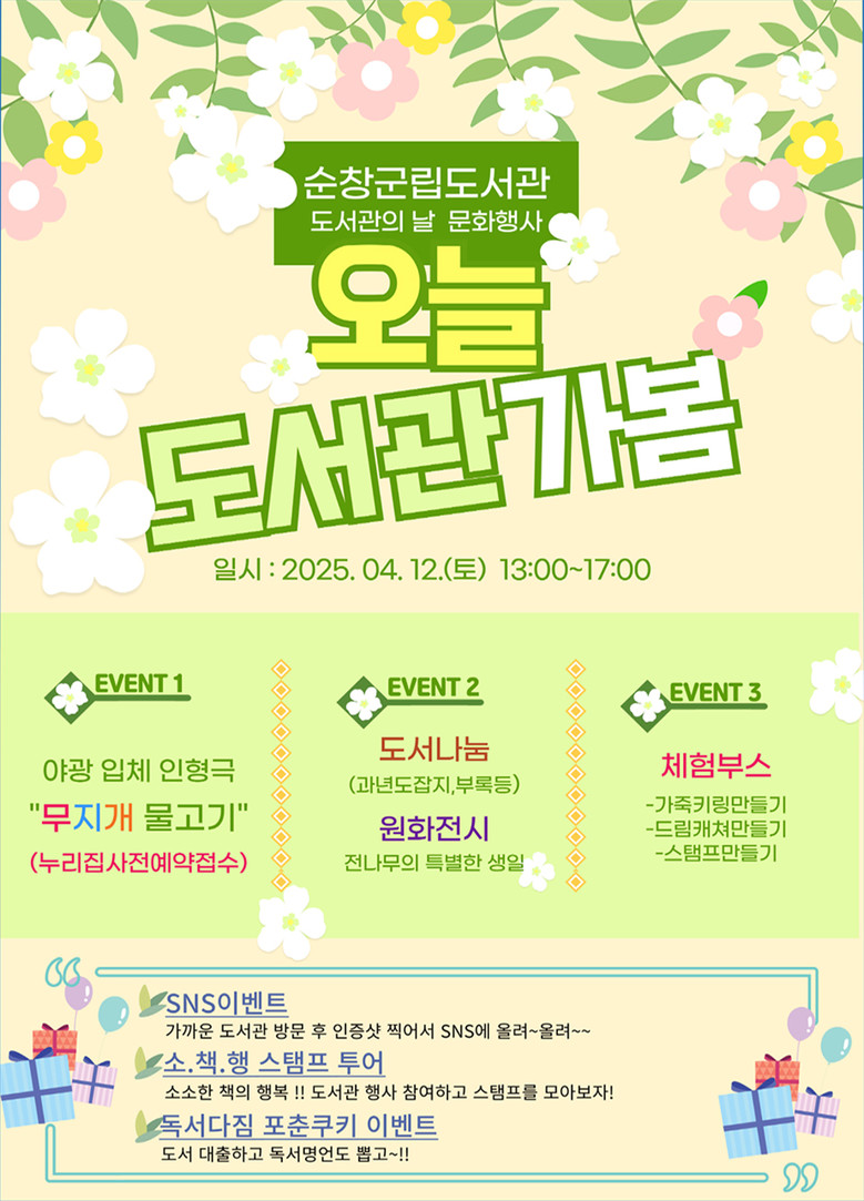 도서관 관계자는“이번 문화행사를 통해 도서관이 더욱 친근한 공간으로 다가가길 바란다”면서,“따스한 봄날, 도서관에서 소소하지만 특별한 추억을 만들어가시길 바란다”고 전했다.