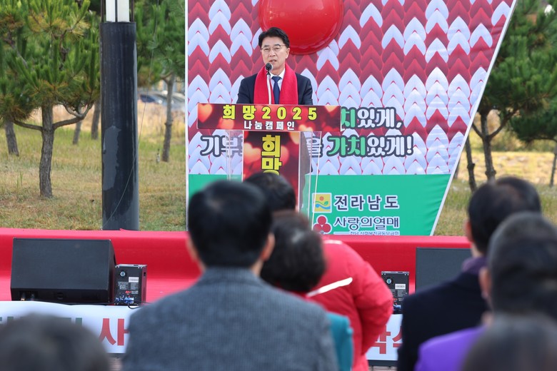 [전남 세계타임즈=우덕현 기자] 김태균 전남도의장은 12월 2일 오전 11시 전남도청 광장에서 열린 ‘희망 2024 나눔캠페인 출범식’에 참석해 자원봉사자들을 격려하고 “기부활동에 적극 동참하겠다”고 밝혔다.