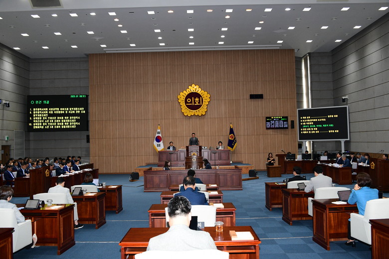 이번 임시회에서는 2023년도 제2회 추가경정예산안 3건(시 2건, 시교육청 1건) 심사, 조례안 43건, 규칙안 2건, 의견청취안 2건, 결의안 5건, 보고안 2건 등 총 57건의 안건을 처리했다.