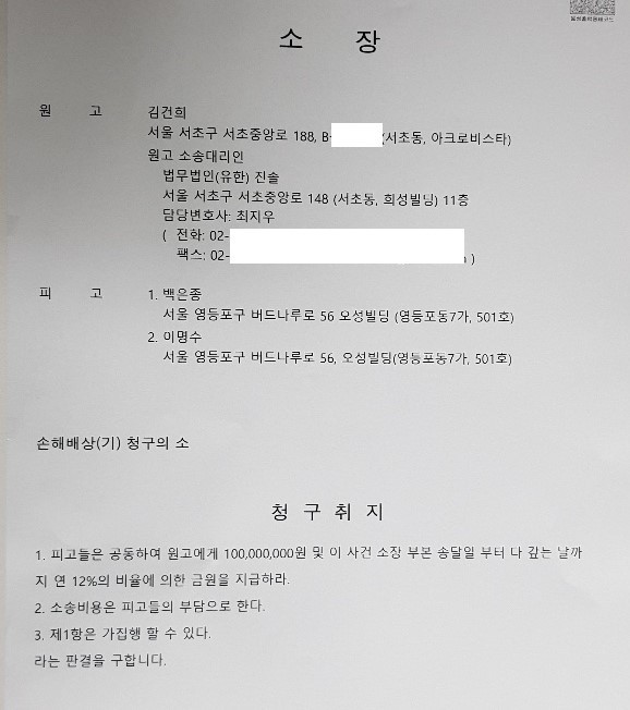 김 씨는 이번 소장을 통해 “피고(백은종 대표와 이명수 기자)의 불법적인 녹음 행위와 법원의 가처분 결정 취지를 무시한 방송으로 인하여 인격권, 명예권, 프라이버시권, 음성권을 중대하게 침해당했다”며 “큰 정신적인 충격을 받았다”고 밝혔다.