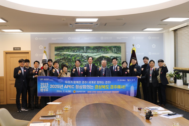- 경주유치의 정당성지지 약속, 서울시장은 “내 이름 써서 홍보해도 좋아” 화답 - [경북 세계타임즈=한윤석 기자] 경상북도의회 2025APEC정상회의 경상북도유치 특별위원회(위원장 배진석)가 2024년 첫 공식행보로 2월 6일(화) 서울시를 비롯 경기도의회와 서울특별시의회를 방문, 따뜻한 환대와 함께 적극 지지를 이끌어내는 등 큰 성과를 거두었다.