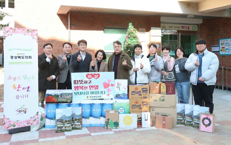 이날 ‘예다움’ 장애인 거주시설을 방문한 경북도의회 관계자들은 “도의원 여러분과 사무처 직원들이 좋은 뜻으로 모아주신 선물 덕분에 이웃사랑의 참된 의미를 찾을 수 있어 보람된 하루였다”며, “불우한 이웃들이 조금이라도 따뜻하고 행복한 연말연시를 보내는데 도움이 되었으면 좋겠다”고 말했다.