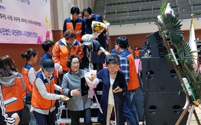 대전시시각장애인연합회 이상용 관장은 “오늘 사랑의 사다리 밴드 봉사단체에서 행사안내 봉사를 지원해 주셔서 큰 힘과 위안이 된다.”면서 감사함을 전했다.