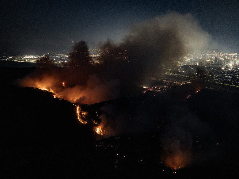 28일 오후 2시 1분께 대구 북구 노곡동 함지산에서 발생한 산불이 야간에도 확산하고 있다. 2025.4.28