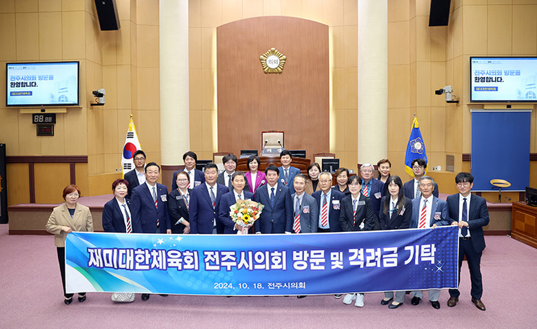 21일 전주시의회에 따르면, 제105회 전국체육대회 참가를 위해 한국을 방문한 재미대한체육회 정주현 회장을 포함한 20여 명의 대표단이 지난 18일부터 2박 3일간의 일정으로 전주를 공식 방문했다. 이번 방문은 지난 5월 전주시의회 의원 미국 공무국외출장단(단장 송영진)이 로스앤젤레스에서 체결한 「전주시의회-재미대한축구협회 간 생활체육 교류 활성화」 업무협약의 성과로 성사된 것이다.