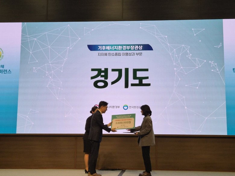 [경기도 세계타임즈=송민수 기자] 탄소중립 도민 참여 플랫폼인 ‘기후행동 기회소득’을 운영 중인 경기도가 기후에너지환경부가 추진한 ‘지차제 탄소중립 우수사례’ 평가에서 광역지자체 1위(장관상)를 차지했다. 시상식은 17일 소노캄 여수에서 열렸다.