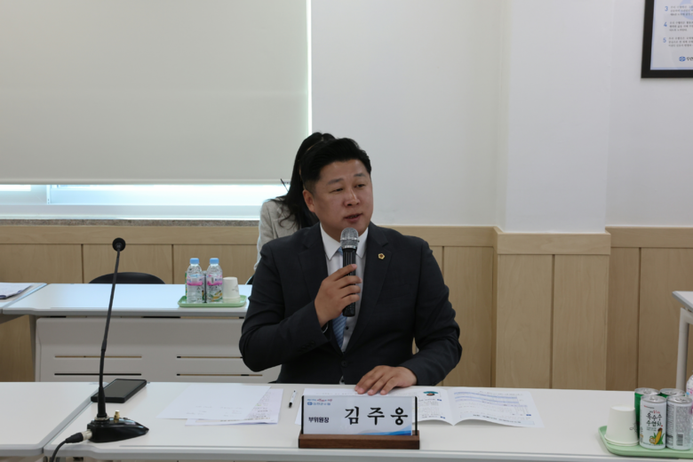 이날 김주웅 의원은 어업인들의 목소리를 대변하여 ▲담수 방류량 및 시기 조정을 위한 소통 창구 마련, ▲협의체에 수자원공사 포함, ▲명확한 담수 피해 파악을 위한 용역비 확보를 요구하였다.