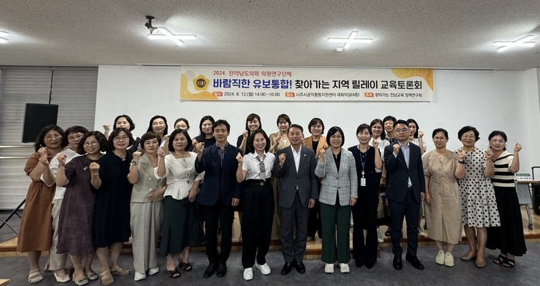 [전남 세계타임즈=우덕현 기자] 전라남도의회 ‘찾아가는 전남교육 정책연구회’는 지난 8월 12일에 나주시공익활동지원센터 대회의실에서 유보통합을 주제로 토론회를 개최했다.