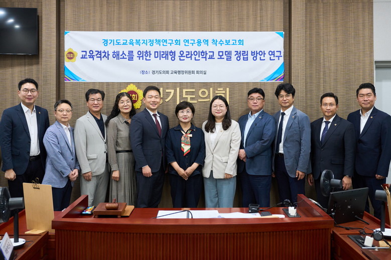 [경기도 세계타임즈=송민수 기자] 경기도의회 경기도교육복지정책연구회(회장 황진희 의원, 교육행정위원회)는 10월 1일(수) 경기도의회 교육행정위원회 회의실에서 「교육격차 해소를 위한 미래형 온라인학교 모델 정립 방안 연구」 착수보고회를 열고, 경기도형 미래교육 모델 마련을 위한 논의를 시작했다.