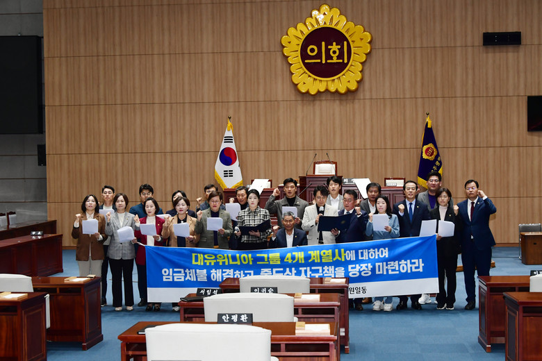 광주시의회는 전체 의원 명의로 발표한 건의안에서 지역기업과 노동자들을 극단적 위기상황으로 내몰고 있는 대유위니아 그룹에 대한 엄벌과 지역경제 위기를 극복할 대책 마련을 촉구했다.