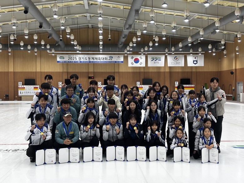 | ▲컬링 종목 선수들 단체 기념촬영 모습.(사진=경기도체육회) |