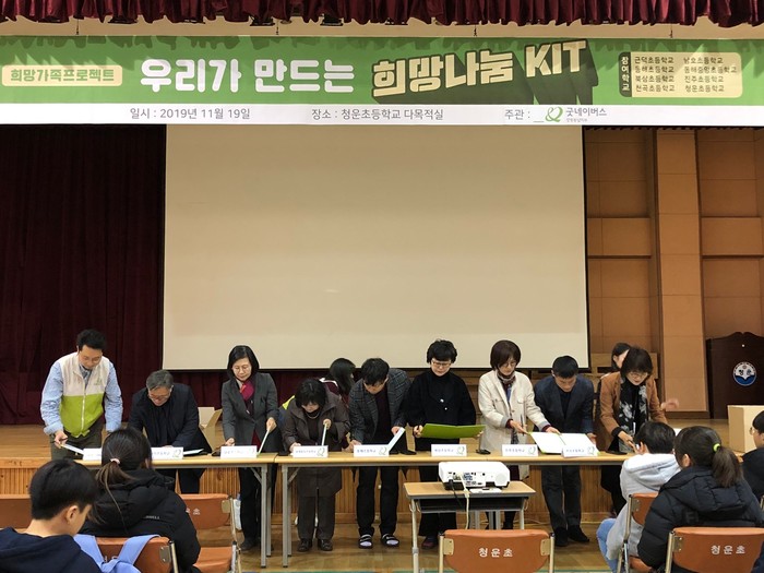 [강원도=세계타임즈 김민석 기자] 19일(화), 굿네이버스 강원동남지부(지부장 이상욱)은 동해청운초등학교 다목적실에서 저소득가정 내 영양불균형의 문제와 위생문제의 개선을 위한 희망가족 프로젝트 ‘희망나눔 KIT’ 제작 행사를 진행했다.이번 행사에는 동해-삼척 8개 초등학교 교장들과 학생 등이 참석했다. 이날 제작된 희망나눔 KIT 200개는 식료품과 생필품으로 구성됐으며, 강원 영동지역에식료품지원이 필요한 100가정에게 전달될 예정이다.