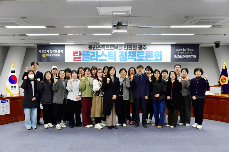 좌장을 맡은 최 의원은 “플라스틱 문제는 일상의 편리함이 만든 사회적 비용이며, 이제는 시민 모두가 참여하는 자원순환 사회로의 전환이 필요하다”고 강조했다. 이어 “한 연구에 따르면 우리는 매주 약 5g, 즉 신용카드 한 장 분량의 미세플라스틱을 섭취하고 있다”며 “우리 일상 곳곳에 침투한 미세플라스틱은 건강과 생태계를 위협하는 만큼, 광주가 선도적으로 탈플라스틱 도시로 나아가기 위해 지역사회 모두의 참여와 노력이 필요하다”고 덧붙였다.