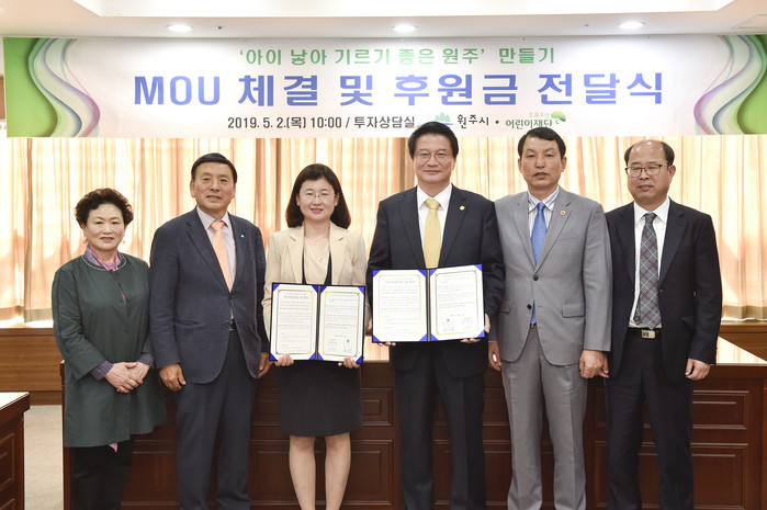 후원금 전달식과 함께 문막읍내 설치될 장난감도서관에 대한 업무협약식이 함께 진행됐다. 이번 협약을 통해 어린이재단은 그간의 경험을 토대로 아이들에게 적합한 연령대별 장난감 및 놀이 시설을 구축하고, 원주시는 이후 시설 유지관리를 맡아 지역 주민들 대상 고품질의 보육서비스를 제공해나갈 예정이다.