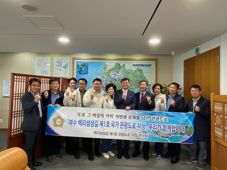 [여수시 세계타임즈=우덕현 기자] 여수시의회(의장 김영규)에 따르면 4월 17일 ‘백리섬섬길 제1호 관광도로 지정 연구회’(대표의원 최정필)가 전남도를 방문한 결과 전남도로부터 “백리섬섬길이 국가 제1호 관광도로로 지정될 수 있도록 ‘적극 노력하겠다’는 긍정적 답변을 받았다”고 밝혔다.