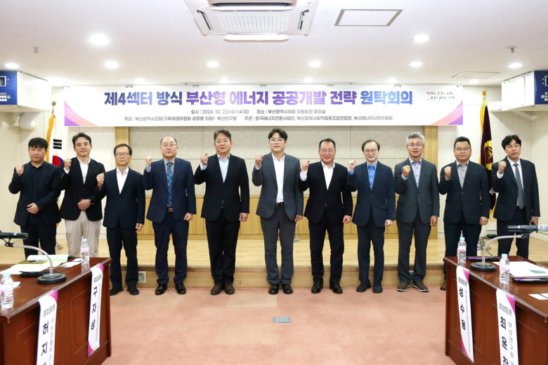 [부산 세계타임즈=이용우 기자] 성창용 부산광역시의회 기획재경위원장은 김태효 의원, 김형철 의원 반선호 의원과 함게 23일 부산시의회 의원회관 회의실에서 「부산 분산형 자급자족 에너지 인프라 개발 및 확충을 위한 전략 원탁회의」를 개최하였다.