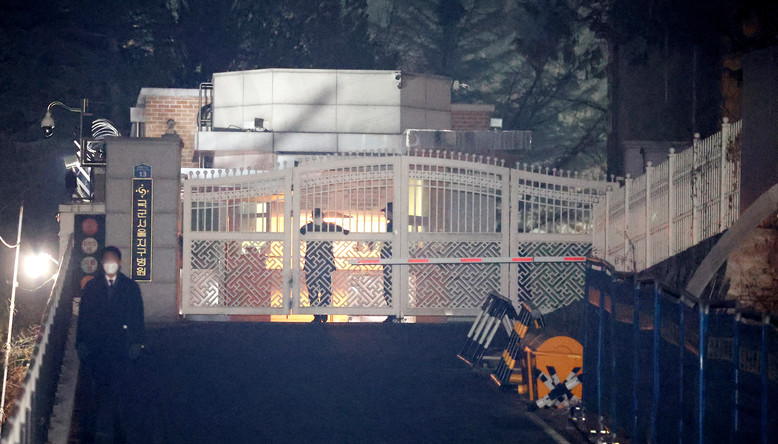 [세계타임즈 = 이장성 기자] 윤석열 대통령이 21일 헌법재판소 탄핵심판에 출석해 변론을 마친 뒤 서울구치소가 아닌 국군서울지구병원으로 이동했다. 윤 대통령을 태운 호송차는 이날 오후 4시 42분께 서울 종로구 헌법재판소를 출발해 국군서울지구병원으로 이동한 것으로 알려졌다. 사진은 이날 밤 관계자들이 국군서울지구병원 정문을 지키는 모습. 2025.1.21
