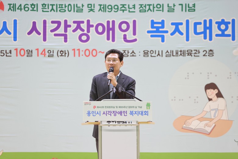 이상일 시장은 이어 처인구 용인실내체육관으로 자리를 옮겨 ‘제46회 흰 지팡이의 날(10월 15일)’과 ‘제99주년 점자의 날(11월 4일)’을 맞아 열린 기념식에 참석했다.