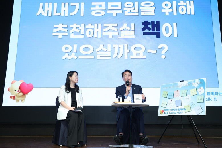 정 시장은 신규 공직자를 위한 추천도서로 자신의 감정과 삶에 집중하는 심리적 태도를 강조하는 ‘렛뎀 이론’을 추천하고, 공직 근무 당시 직장 생활이 힘들었을 때 친한 멘토와 상담을 통해 슬기롭게 극복할 수 있었던 경험담을 공유하며 신규 공직자들의 새로운 출발을 격려했다.