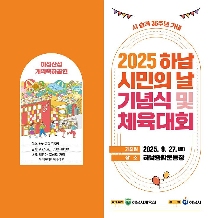 ◦ 어린이 에어바운스, 홍보·체험 부스 운영 등 다양한 프로그램 마련 [하남시 세계타임즈=송민수 기자] 하남시(시장 이현재)는 오는 9월 27일 하남종합운동장에서 ‘제36주년 하남시민의 날’을 맞아 기념식과 체육대회를 비롯한 다채로운 행사를 개최한다.