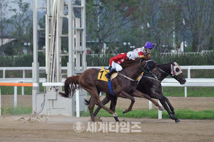 [세계타임즈 임인규기자]김경민 마주의 '소통시대(6세, 거세마, 한국, 레이팅 101)'가 드디어 일을 냈다. 하재흥 조교사(35조)의 훈련으로 우승을 담금질 해온 '소통시대'는 23일(일) 한국마사회(회장 이양호) 렛츠런파크 서울에서 열린 제8회 서울경제신문배(제10경주, 1등급, 1800m)에서 막판 짜릿한 역전극을 연출하며 가장 먼저 결승선을 통과했다.