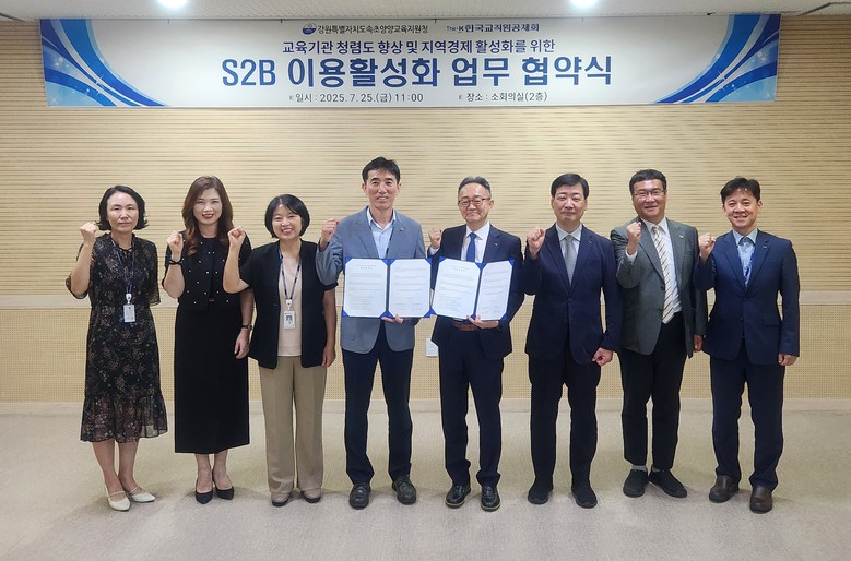 [강원도 세계타임즈=김민석 기자] 속초양양교육지원청(교육장 한명진)과 한국교직원공제회(이사장 정갑윤)는 7월 25일(금) 오전 11시 속초양양교육지원청에서 ‘교육기관 청렴도 향상 및 지역경제 활성화를 위한 학교장터(S2B) 업무협약’을 체결했다.