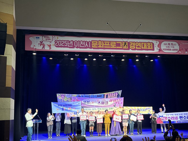 [이천시 세계타임즈=송민수 기자] 이천시(시장 김경희)는 2025년 10월 15일 이천아트홀 소공연장에서 14개 읍면동 약 450명의 시민과 함께 각 지역의 특색있는 문화와 예술적 역량을 발휘하는 ‘이천시 문화프로그램 경연대회’를 성황리에 마쳤다고 밝혔다.