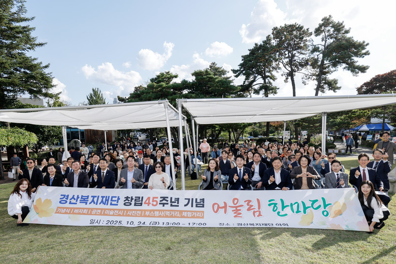 행사는 기념식과 축하공연, 체험·전시 부스 운영, 지역사회 나눔 행사 등 다채로운 프로그램으로 진행됐다. 특히 재단이 걸어온 복지의 역사와 변화를 한눈에 볼 수 있는 ‘경산복지 45년 발자취 전시관’이 운영되어 많은 시민들의 관심을 모았다.
