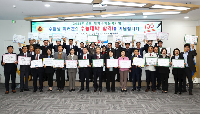 [강원도 세계타임즈=김민석 기자] 강원특별자치도의회(의장 김시성)은 11월 5일 강원특별자치도의회 세미나실에서 2025학년도 대학수학능력시험 수험생 격려·응원 행사를 개최했다.