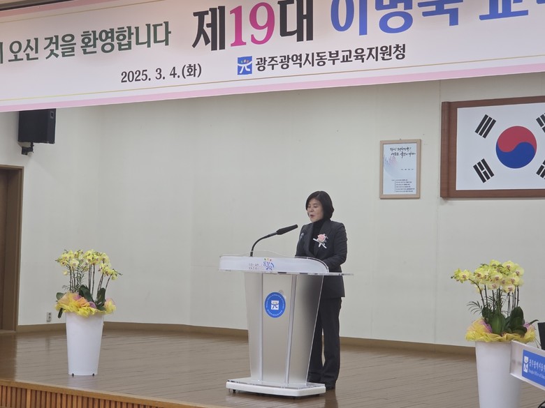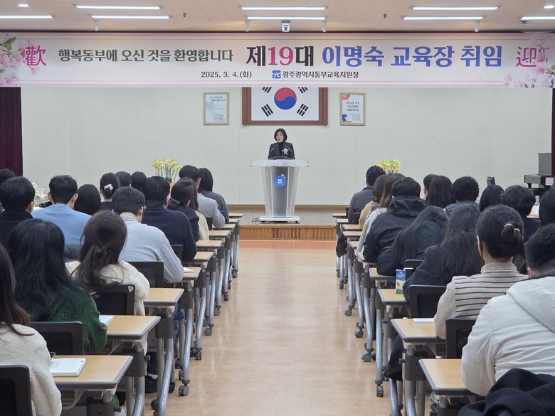 [광주 세계타임즈=손권일 기자] 광주동부교육지원청 제19대 이명숙 교육장이 4일 동부교육지원청 대강당에서 취임식을 갖고 업무를 시작했다.