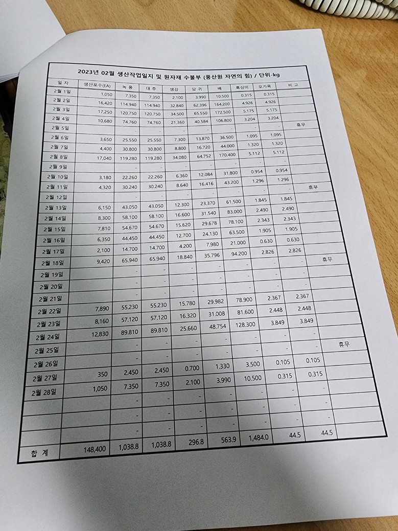따라서, 고객선택 주문방식으로 제공되기에 고객들에 따라 함량은 다르므로“6.9%, 7.5%만 함유된 가공식품”이란 기사는 잘못된 기사이며,식약처 담당관님께서도 고객선택 주문방식으로 가공되는 것을 풍산원 토속 가공실 현장 조사시 직접 확인한 것임을 밝힙니다.