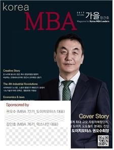 <권오수 회장과 김인호 대표가 후원해 발간한 고려대학교 경영대학원 동문회보 (사진은 도이치모터스 권오수 회장)>
